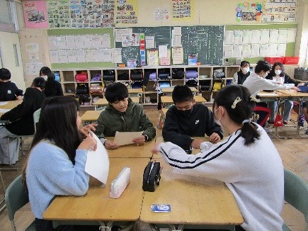 講演を聞いて感じたことをクラスの仲間と話し合い、それぞれが感じたことについて共有しました。